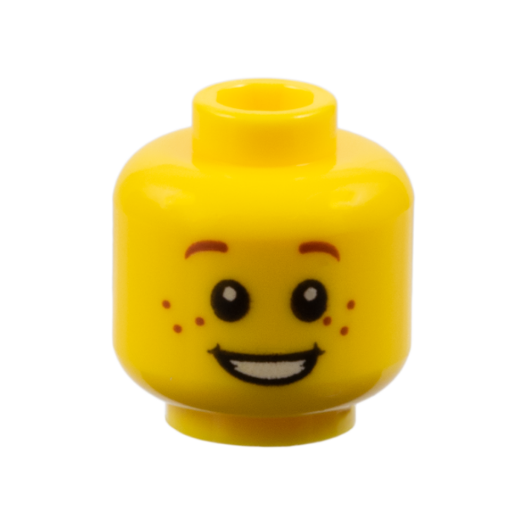 Head Child Small Reddish Brown Eyebrows Far Apart, Freckles, Open Mouth Smile with Teeth Pattern - 3626pb0471