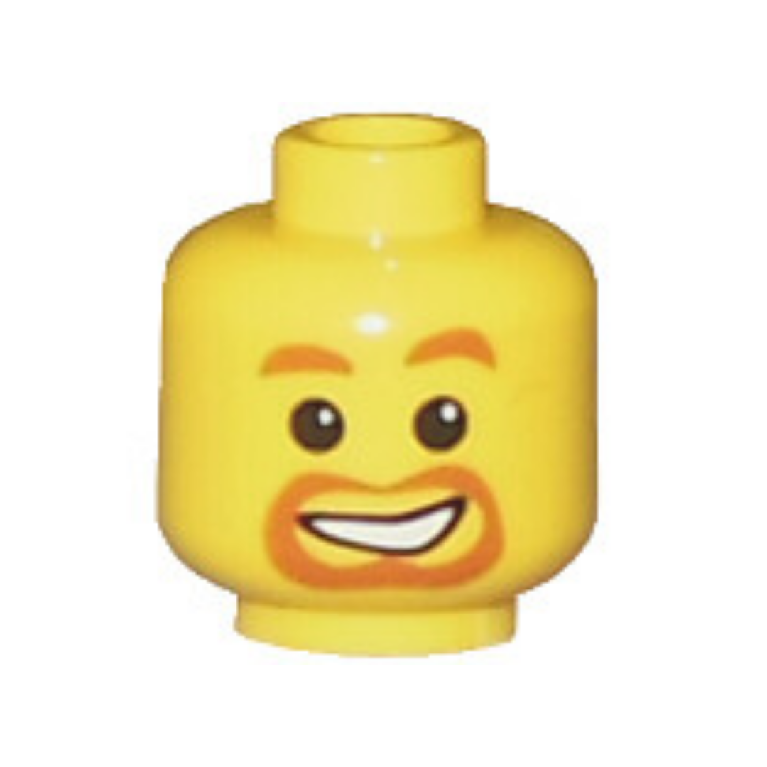 Head Dark Orange Eyebrows, Moustache, and Goatee, Lopsided Open Mouth Smile with Teeth Pattern - 3626pb0023