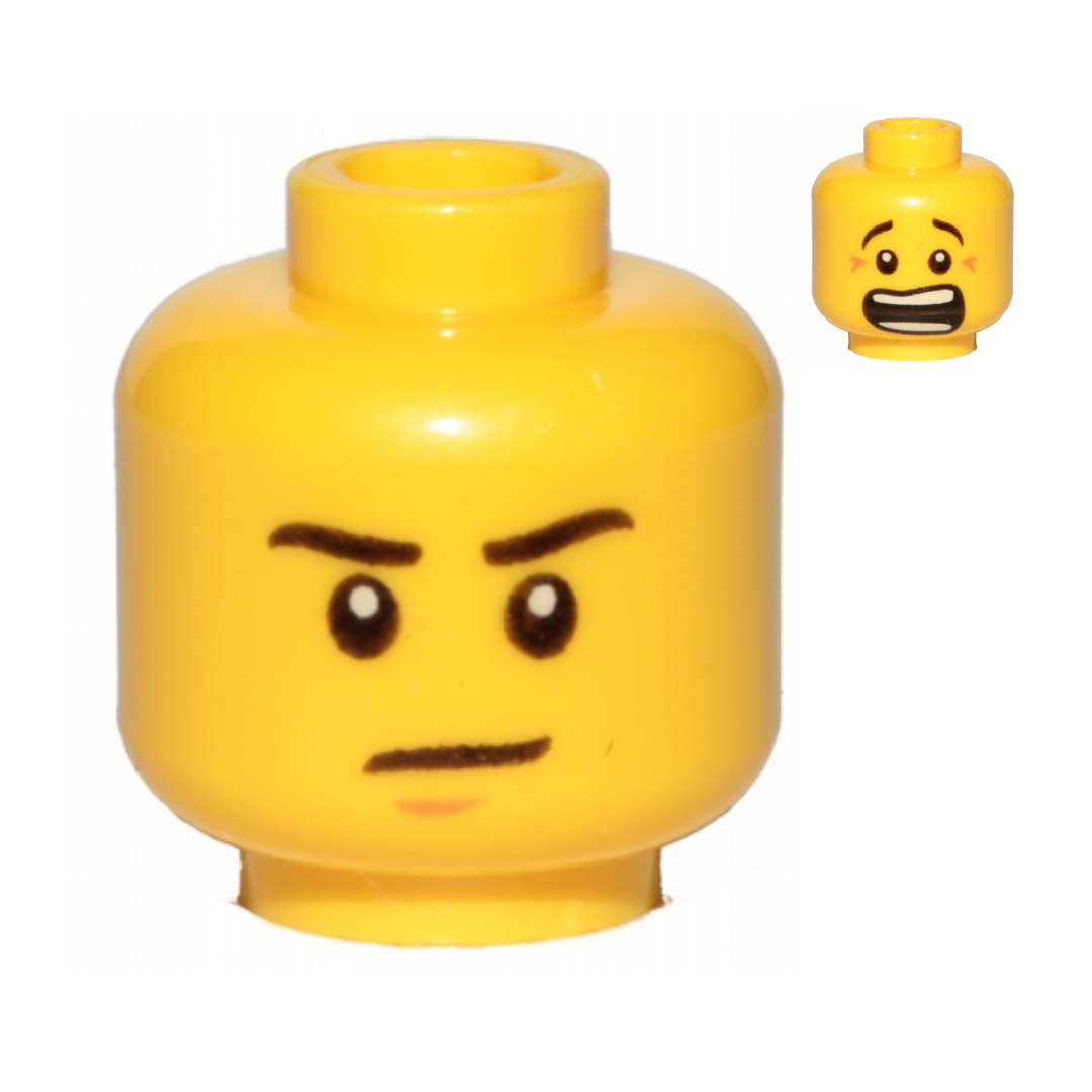 Head Dual Sided Black Eyebrows, Stern with Nougat Chin Dimple / Scared Open Mouth with Teeth Parted Pattern - 3626pb1337