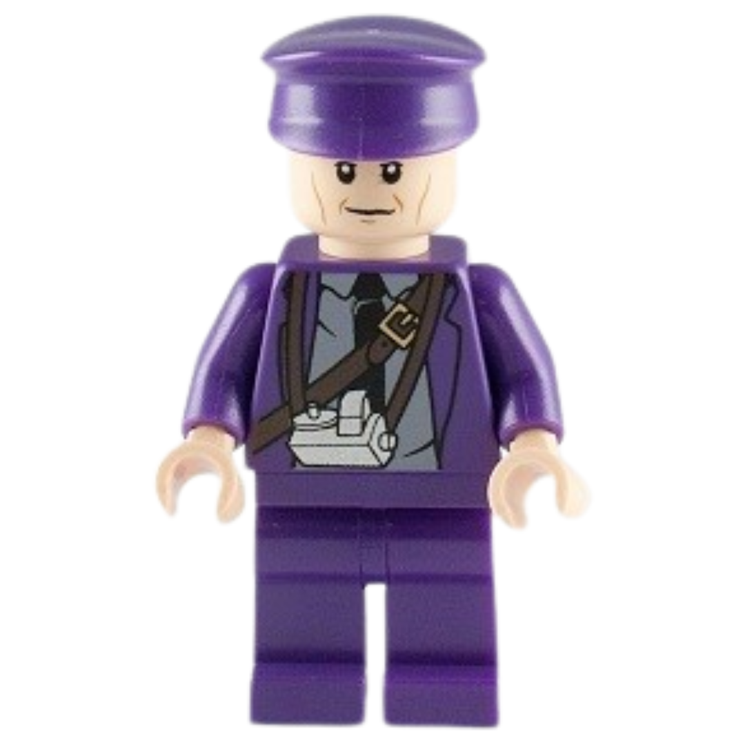 Stan Shunpike. Aparece en: Harry Potter y el Prisionero de Azkaban Stan Shunpike es el joven y entusiasta conductor del Autobús Noctámbulo, un transporte mágico que asiste a magos y brujas en apuros. En Harry Potter y el Prisionero de Azkaban, Stan recoge a Harry durante una noche crucial, proporcionándole un medio de transporte seguro en un momento de necesidad. Esta minifigura de LEGO representa a Stan con su característico uniforme de conductor, incluyendo una chaqueta púrpura con una corbata negra y una banda diagonal en el torso, capturando fielmente su apariencia distintiva. Lanzado por LEGO: 2011